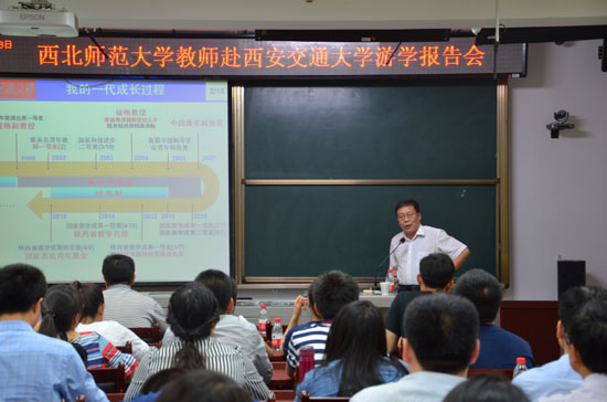 在陕西师范大学,该校教师发展中心副主任何聚厚教授作了题为《“互联网+教学”的挑战与机遇》的报告。他指出,基于信息技术的方式方法可以解决教与学中的诸多问题,教师要主动应对信息技术的挑战,教育理念和教学模式的深刻变革是“互联网+”教学的关键。何教授还介绍了信息技术环境基于精熟学习的教学模式,微课的形式与特点、翻转课堂对教学流程的重构、翻转学习的基本要素与翻转课堂的教学设计。我校青年教师就微课、翻转课堂等教学问题与何老师作了交流,并参观了国家级教师教学发展示范中心、现代教学技术教育部重点实验室。