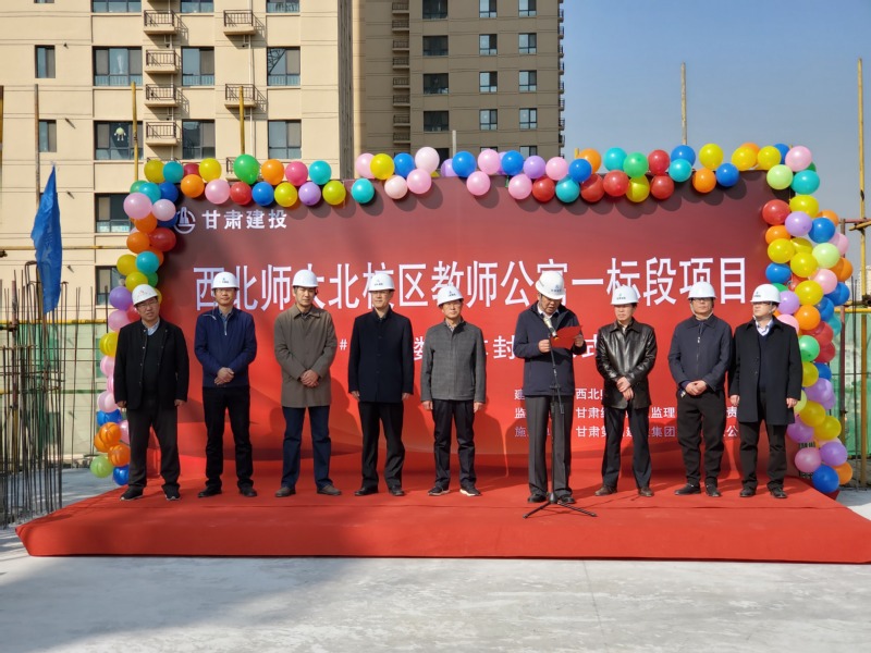 10月28日上午,西北师大北校区教师公寓一标段1#楼(12层)、5#楼(10层)两栋住宅楼提前实现封顶。副校长李建民及相关部门负责人,施工单位、监理单位负责人,住户代表,参建各方人员100多人参加了封顶仪式。