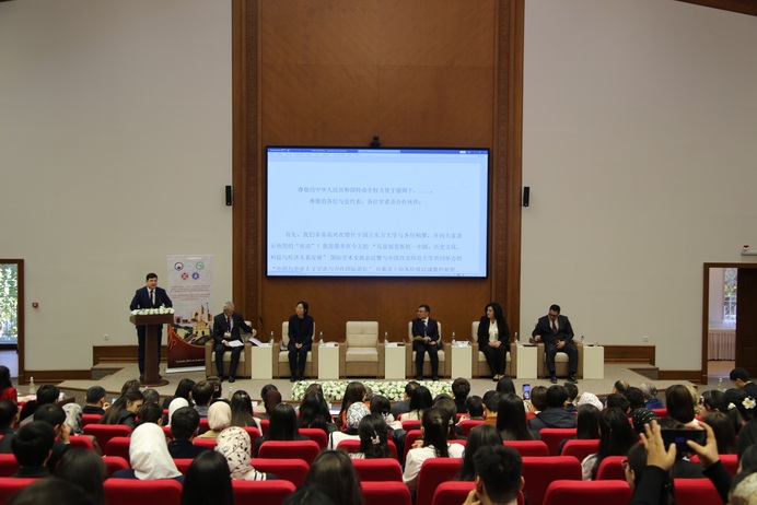 马利邦在致辞中表示,自“一带一路”倡议提出以来,中国与中亚国家在政策沟通、设施联通等五通方面取得显著成果,高等教育合作已成为推进人文交流的重要路径。希望与会专家学者能以此次论坛为契机,深化中国与中亚国家在学术交流、科学研究与人才培养领域的合作,为促进区域共同发展、“一带一路”人文交流注入新动力。